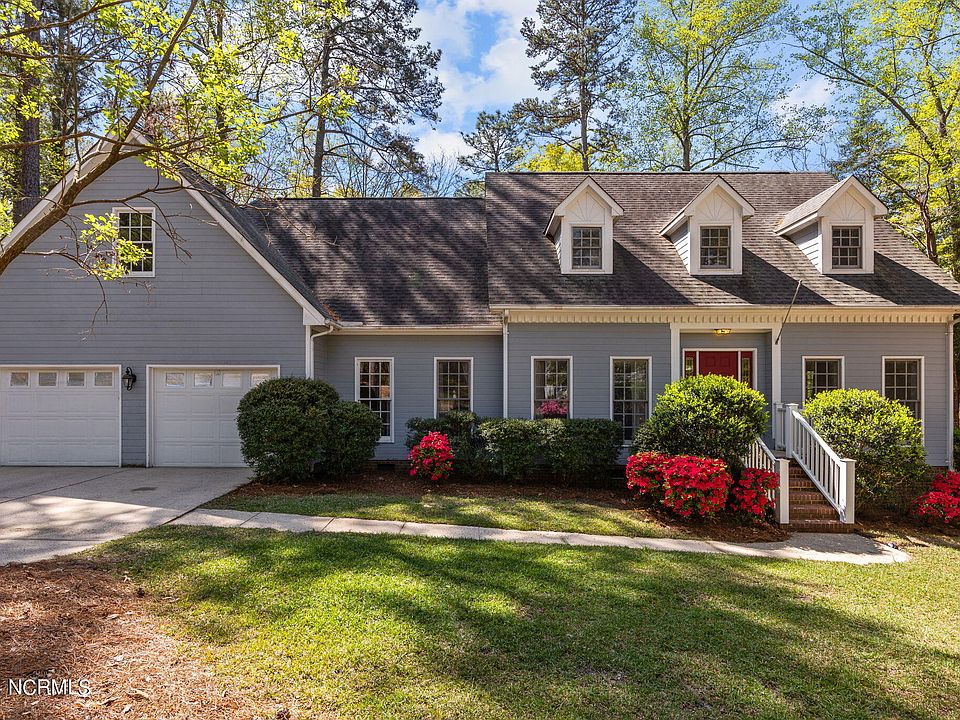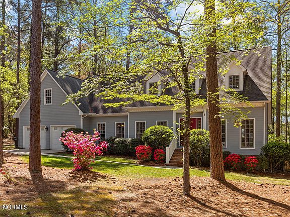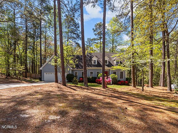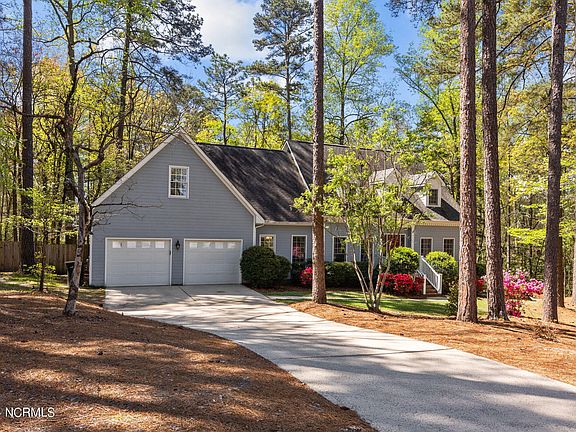 Step inside this charming 4-bedroom, 3.5 bathroom traditional home with attached oversized 2-car garage with lawn care included. The main floor offers a formal living room and dining room with one of two beautiful primary suites. This first suite boasts a large bathroom with separate vanities and a garden tub with chandelier for the ultimate in relaxation. The kitchen features stainless-steel appliances, granite countertops and an eat-in space with a beautiful bay window opening to an expansive living room with wood-burning fireplace and access to the outdoor deck overlooking a private, lush backyard. Upstairs you'll find the second primary suite with large dual vanities in the full bathroom. The third and fourth bedrooms are spacious and can be used as a bonus media room or office. Situated near the entrance of Sandhurst Park, you can easily enjoy the outdoors. Conveniently located near shopping, restaurants, and major attractions in Southern Pines. Don't miss out on calling this spacious 2,640 sq ft home yours! Pets are welcome upon owner approval.