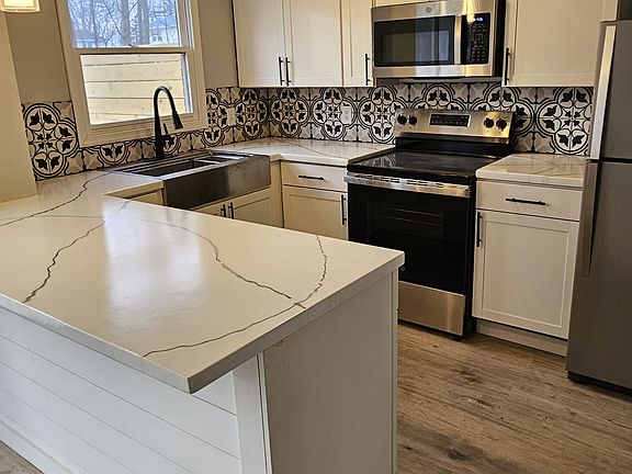 Completely remodeled duplex, 2 bedroom 1and half bath, open concept brand new kitchen, new cabinets, new countertop, new farmhouse sink, new hardwood flooring, new carpet and paint throughout, new stove, new refrigerator, new washer and dryer, new bathroom vanities, all new light fixtures throughout, new deck, new furnace, new central air conditioning, new hot water tank. Everything brand new top to bottom. Garage, private back yard, good neighborhood. Water and trash paid by landlord Owner pays water and trash, Tenant pays electric. First month rent and deposit required. ABSOLUTELY NO PETS. 1 year lease