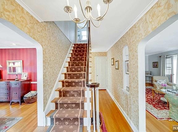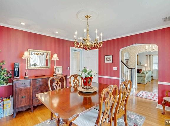 Do not miss this impeccable Center Hall Colonial in a top Wood-Ridge location on the corner of Hillcrest with a NY view. Fabulous curb appeal made possible by full sprnklr sys, privacy bushes/fencing & owners' attention to detail. Very private yard was made possible by variance for 6ft. fence in 2010. Entry Fyr. access sends you right, to huge LR w/hdwd. flr. & Fpl, left to FDR w/hdwd flr.,up staircase to 2nd flr. or down cntr hall to rear dr & PR. MEIK w/ample counterspace is perfect for preparing special meals. First lvl finishes w/3+ seas. rm w/heat (+) from artificial FPL.. 2nd level features Lg.MBR w/custom WI Closet & 2nd closet; BR w/WI closet & BR w/closet; lg. FCTB w/porcelain tub & Stall shwr. Bsmt. mostly fin. w/fam. rm./man cave & wet bar, .5 bth; lndry rm; exrsz rm. Updts/Amenities: Marvin Wndws 2001-2; CAC 2010; Retainer wall 2010; High Effcy Weil McClain boiler 2010; on demand water htr 2022; roof & deck 2011; SunRm & sprnklr sys 2017; oil tank removed NFA 2012