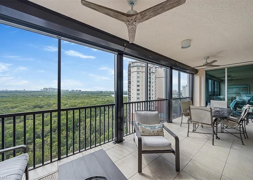 - Bar, Built-In Cabinets, Fire Sprinkler, Foyer, Laundry Tub, Smoke Detectors, Tray Ceiling(s), Volume Ceiling, Walk-In Closet(s), Window Coverings, Balcony, Den - Study, Guest Bath, Guest Room, Laundry in Residence, Screened Lanai/Porch