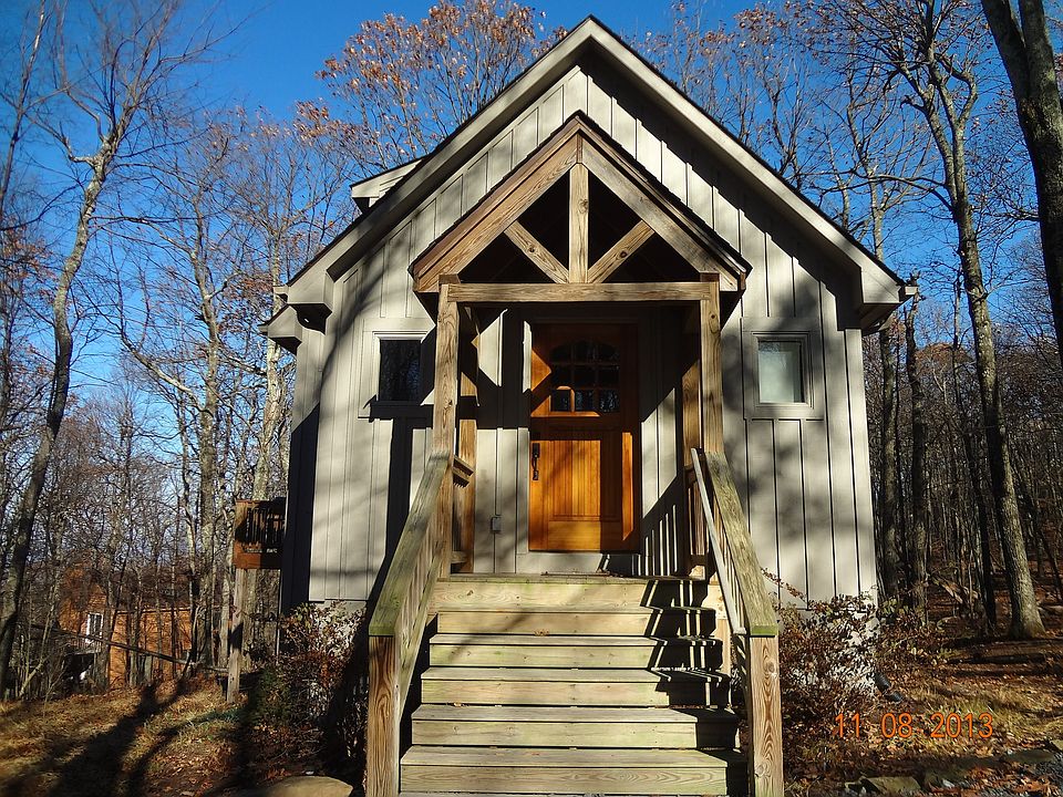 Craftsman style Post and Beam Cottage, with modern conveniences, lots of cozy nooks, incredible Seasonal Views, and energy efficient. House is sited at end of street with lots of open space preserves surrounding it to protect privacy. Post and Beam style home with two bedrooms and a full bath upstairs with privacy porch, main level foyer, half bath, laundry, kitchen, dining and living room with rock veneer fireplace, built-in book shelves. There are decks and porches for outside living adjacent. Lower level has a den, and master bedroom suite. There is a french door from den to lower level decks and spa.