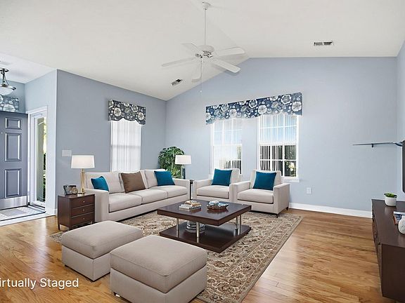 Rear porchFront porchCustom vertical blindsHurricane shutter protectionVaulted ceilingBreakfast barSolid surface countertops