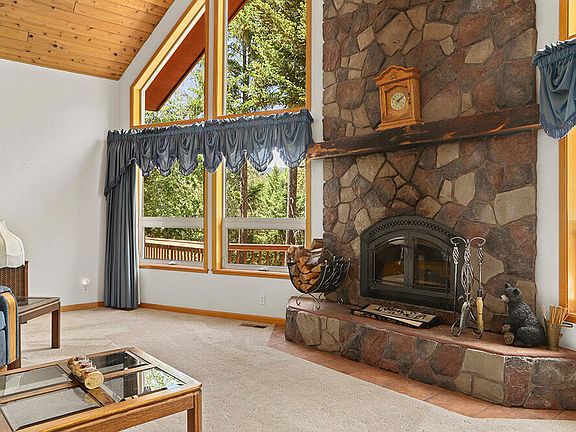 Amazing Pacific Northwest Style Mountain Home. This Custom Built 2862 Sq Ft home was built in 2003 for the sellers, and Features 3 Good Size Bedrooms, 2 1/2 Baths, Oversize Great Room with Knotty Pine Vaulted Ceilings, Two Stories of Windows to capture the Beautiful Views, Formal Dining Room, as well as a two story Rock Fire Place with Wood Burning Insert. The Spiral Staircase in the Great Room takes you to the Large Loft overlooking the Beautiful Back Yard and Acreage. The Kitchen has Granite Counters, Island with Eating Bar, Tile Floors & Large Pantry. Laundry Room has lots of Storage and an attached 1/2 Bath. Large Primary Bedroom Suite features Slider to the Back Yard, Walk in Closet, Large Bath with 2 Sinks, Soaking Tub, and Separate Shower. There is a Covered Patio off the kitchen that gives access to the Spacious Back Yard and Gazebo. Attached 3 Car Garage, Plus the Detached 1600 Sq Ft Garage/Shop with a Full Bath. Covered RV Parking as well as additional Carports. 5.03 Acres.