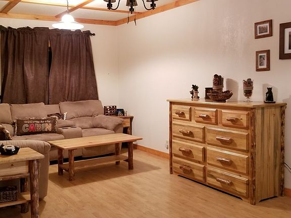 This cabin is a warm welcome to the mountain. This 1834 square foot cabin has plenty of room for the family. With a basement that is a great spot for the kids with a bedroom and a bathroom with a bonus living room and then you walk up to the spacious main level where you will find a great room with your kitchen dining and family room area there is also a bedroom and a bathroom on this level. You can walk out onto you 2 sided connected covered deck and stairs so snow will never be an issue to shovel, just sot there and watch the beauty of the mountain. This cabin also has a huge loft with a bedroom that can used as a master suite or a bunk room for the kids. This outdoor area of this cabin is set back off the road and has a shipping container storage for all of your mountain toys.