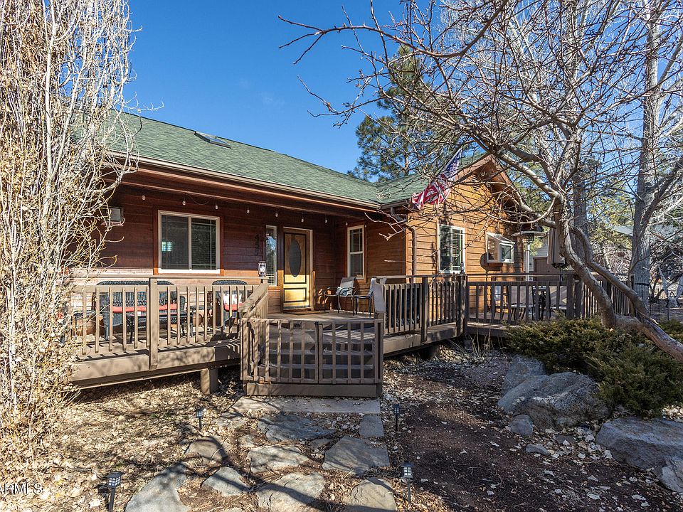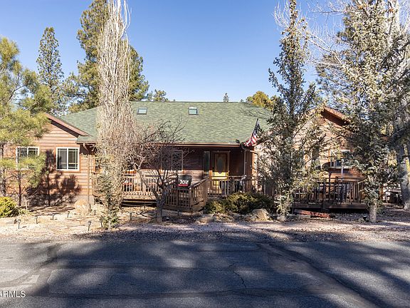 Welcome to this beautifully updated three-bedroom, two-bathroom cabin tucked among the tall pines—an ideal mountain retreat for anyone looking to escape the heat and unwind in nature. Located just steps from scenic trails winding through the towering forest, this serene getaway offers peace, privacy, and modern comfort. Step inside to find a thoughtfully refreshed interior featuring brand-new paint, updated hardware, and a cozy gas fireplace that invites you to relax. The kitchen is equipped with a new refrigerator and dishwasher, along with nee faucets in both the kitchen and bathrooms. High-efficiency, top-of-the-line windows throughout the home provide exceptional insulation and natural light The spacious open-concept living area flows seamlessly into the kitchen, complete with a generous pantryperfect for entertaining or quiet evenings at home. Unwind in the oversized garage, where a private hot tub awaits after a day of hiking, golf, or outdoor adventures. Step out onto the recently extended deck, offering plenty of space for dining, grilling, or simply soaking in the crisp mountain air with friends and family. This cabin is designed for low-maintenance living, featuring a newer roof, central A/C, and durable finishes throughout. Nearly $50,000 in improvements have been made over the past year, adding tremendous valueincluding an $8,000 Polaris RZR, which is included with a successful close of escrow! This charming Munds Park cabin blends rustic ambiance with modern upgradeseverything you need for mountain living at its best.