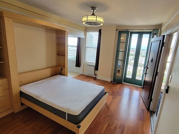High-Floor, Beautiful City-View Studio in the designated Historical Cooper Arms Building. French doors open to balcony and ocean breeze. Enjoy an Open Layout, High Ceilings, Ceiling Fan, Natural Light, Hardwood Floors, Upgraded Kitchen with Granite Counter Tops, and Stainless-Steel Refrigerator.
