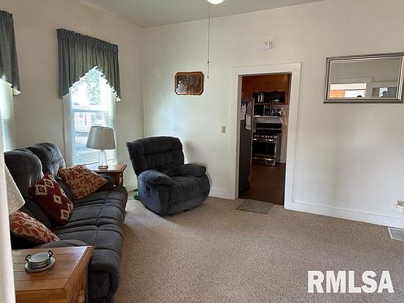 Great Location! Zoned B-2 General Business! This 3 Bedroom home features a 14 x 15 formal Living Room (large flat screen TV included in sale) , Informal Dining Room, Kitchen with nice older wood cabinets with appliances. Main floor 9 x 7 laundry room with washer & dryer. 15 x 11 Enclosed Porch; carpet installed in June of 2022, Full Bath remodeled in September 2022, Laminate flooring in kitchen and Laundry Room in September 2022. Replacement Windows, Lennox Pulse 21 GFA Furnace, 200 Amp Breaker Box, Gas Water Heater (installed 2022). Large 34 x 38 heated garage for all your cars and toys! Plus a 16 x 17 one car garage and a 16 x 27 finished area with 1/2 bath and GFA Furnace; great man cave, apartment, or small business shop.