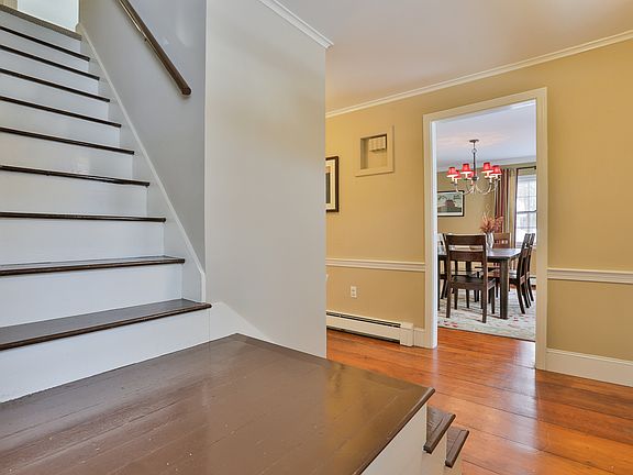 To schedule a showing or for more information, contact Catherine Zerba at (617) 688-6024 cell , (603) 489-3198 cell or (603) 912-5470 office. Situated on 2.7 acres, this updated and expanded 3 Bedroom, 2 full Bath Cape w/ 2 car attached garage offers charm, character and curb appeal! The first floor features an open concept, and spacious, Kitchen and Family Room w/ hardwood flooring. The Kitchen has newer SS appliances, a granite center island and an abundance of counter & cabinet space with a great & sun-filled view to the backyard thru 2 windows. Large Family Rm w/ pellet stove, slider to spacious deck & adjacent Den/4th room w/ hardwood. Formal Dining & Living Rms w/ wood floors & Living Rm w/wood burning fireplace. Updated first floor Full bath w/Laundry. Second floor w/ 3 Bedrooms and a renovated full Bathroom w/ tile floor,subway tile wainscoting, double vanity sink w/ granite counters & crown molding. Enjoy your level & private wooded backyard with walking/hiking trails. Improvements: 2005 Roof & newer BR carpets. Less than one year - new garage doors, interior paint & upgraded boiler with indirect water heater. Improvements: 1-3 years - new expanded driveway, privacy/decorative fence, flower garden, upgraded water filtration system, new Roth oil tank & new SS refrigerator and stove. 5 years - Renovated upstairs bath, new front door with detailed exterior trim & exterior paint. 4 zone heat. Sought-after Pinkerton School District & convenient access to RTS 111 or 125.