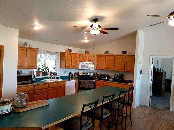 Sunsets are awesome from this wide open West facing mountain view. The home has vaulted ceilings with a huge kitchen, living room and dining all in the center of the home. Bathrooms on Both sides of the home with a split floor plan. Additional Studio, 3rd Bedroom in unattached building with private bathroom and shower. Makes this a full 3 /3 Enjoy this home with an office in the shop or guest room. RV hookups on both sides of the shop with a septic hookup as well. New Metal Roof in 2017, Home and 30 X 30 Shop newly painted in 2018. Property has been cleared of hazardous trees and other fire dangers close to home. Shared 10 gpm well with 2000 gal. holding tank. Fire-wise neighborhood, Neighborhood watch, All surrounding homes are owner occupied. All new flooring throughout home. Studio currently rented. Asphalt improved area of 9000 sqft completed 8/2020. All exclusions negotiable except appliances.