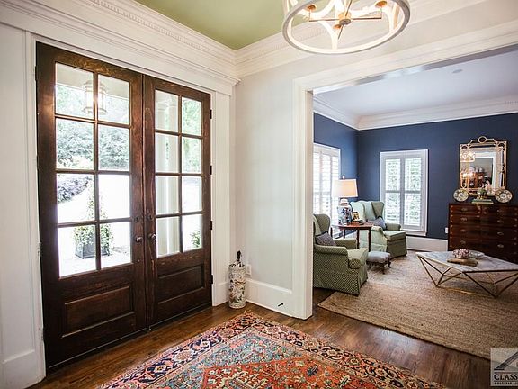 This brick Georgian-style home sits on a stunning 1 acre lot in Five Points! What a rare find, and with 5 bedrooms, 3 1/2 baths and a full finished basement, you won't find more value for your money! You enter into a gorgeous foyer with a formal sitting room on the left and dining room to the right. The mill work on the encasements in the double foyer and 10 ft ceilings on the main floor are sure to capture your attention, in addition to the professionally designed color scheme and decorative accents. The lighting and plumbing fixtures are of the upmost quality, and set the tone for this quality built home. The gorgeous kitchen features a commercial grade gas range, stainless appliances, a large granite island with butcher block cutting board top on one end, and a custom-made walnut breakfast table by Oneta Woodworks on the other side. The kitchen overlooks the family room with a chevron brick fireplace (gas logs) and built-in bookshelves. The family room has access to the rear deck and side screen porch for great entertaining flow! Upstairs has 9 ft ceilings and hardwood floors throughout. The Master Bedroom is upstairs with a private porch, huge walk-in closet with built-ins and a gorgeous, Spa like bathroom. With a claw foot tub, oversized limestone tile shower with multiple shower heads and bench, double vanities and ample storage, this bathroom is fit for a Queen. Two more large guest bedrooms sharing a jack and jill bathroom are located on 2nd floor as well as a laundry room w/ access from the hallway or master closet, making washing clothes a breeze. Lastly, the well finished basement boasts two bedrooms, a large living room and a gorgeous pine bar with refrigerator, dishwasher and sink! Ample light floods this daylight basement, and the high ceilings provide a wonderful living space overlooking the rear yard. If you like porch-sitting, this home has 3 porches (one screened off the living room) and a newly built deck overlooking an acre of land and Brooklyn Creek! The built in trail down to the creek and back yard is large enough for a golf cart and opens into a great space to explore, play or garden! This is truly a unique setting in the heart of Five Points, and provides a great opportunity for the most discriminating of buyers.