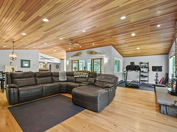 Discover the perfect blend of privacy & comfort in this spacious 3-bed, 2-bath ranch, nestled on over 4 acres near the Gilmore Pond boat ramp with stunning views of Mt. Monadnock from the property’s edge. Upon entering, you'll instantly feel at home and find a handy coat closet, a bedroom with hardwood floors, and a bathroom with laundry. The primary bedroom boasts 2 closets and a private bath. The large kitchen features an island with breakfast bar, SS appliances, and a mudroom connecting to the garage. The grand living room is a standout with cathedral ceilings, recessed lighting, bow windows, and a cozy fireplace with blower insert. A sunroom for relaxation or dining completes the main level. The finished basement offers 2 versatile spaces. The 1st includes a large bonus room with a bar, a theater room, bonus room & another mudroom. The 2nd, with in-law suite potential, features a family room, bedroom, and ample storage. Outside, enjoy a composite deck and tree lined backyard! Showings begin at open house Saturday, June 8, 12-2pm