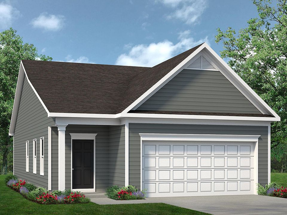 The Ryman plan offers a very efficient layout in a cottage style home, with a welcome entry area at the front door and garage access. A natural, light filled family room with a kitchen that has generous counter space is found in the center of the home. The owner's suite and laundry room are located near for easy access at the back of the home and the plan features a two additional bedrooms and bath. One bedroom could also be configured as a dining room or office.