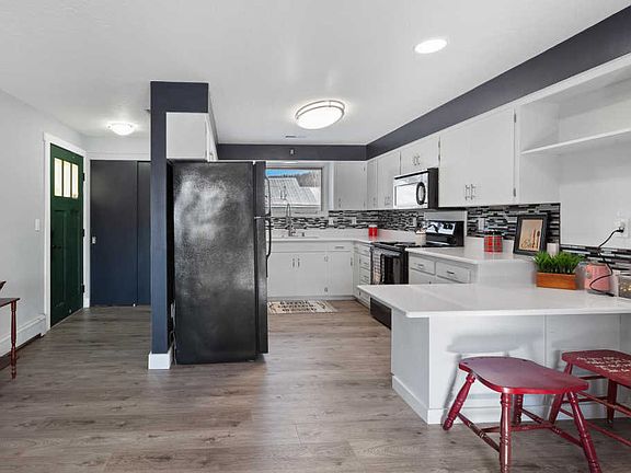 The LARGE UPDATED home you've been waiting for. Completely REMODELED KITCHEN with white Quartz counters and glass tile back splash. This home has A/C, All New Floors, and paint- inside and out. NEW ROOF and hot water heater. Vinyl windows and comfortable radiant heat to keep your energy bills low. RV PARKING, ALLEY ACCESS, Vinyl fenced yard with sprinklers front and back. There is a cold storage room in basement in addition to large family room, and bonus room. The basement is also plumbed for kitchen for multi generational living if desired. Large attached garage with 220V. Too many amenities to list - this is a GREAT VALUE!!