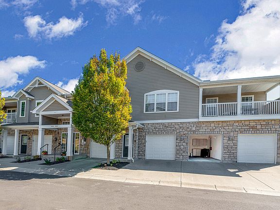 Welcome to this updated, move-in ready condo with a private balcony overlooking the lake. Harvard Floor plan in Ivy Ridge community. Offering large, eat-in Kitchen, 2 bedroom and 2 full bathrooms, in-unit washer/dryer, large pantry, office/den, and an attached garage with storage. The community has a pool and clubhouse. Furnace new in 2020, updated flooring and paint 2021. Easy access to highway, airport and shopping.
