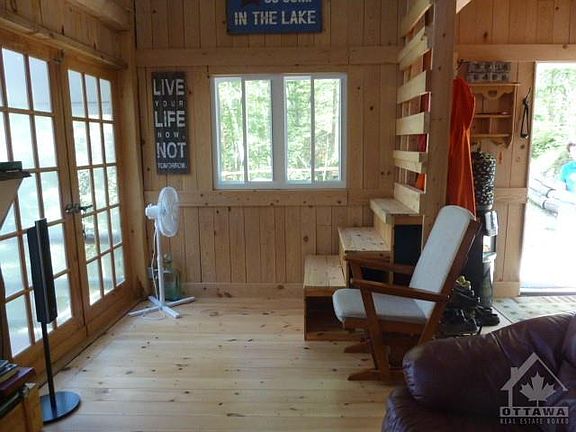 A natural paradise? (28X 14) post and beam (built 2009) cabin-in-the-woods with 100 feet of private shoreline set high above pristine Widow Lake. Building Permits Available; No motor boats on this lake. Decks and dock all built in last 9 years. Quiet and solitude abound with only kayaks, canoes and small fishing craft (great fishing). Your 12 neighboring cottages are out of sight and respect the natural quiet and beauty. Included are 2 Kayaks & Row Boat; Across the lake from the K&P trail, you can hike from Flower Station to Calabogie or south to Snow Station. Very close to large tracts of Crown Land for hunting enthusiasts. Lake water supplies a shower and sink. Sunmar Composting toilet. Screened in Porch-16'x10' with breathtaking view; Hydro One service and great cell reception; Jackson Dr. is a Private Road. Do Not Enter Except with Agent for Viewing-TIMBER RIDGE DRIVE IS A PRIVATE ROAD DO NOT USE TO ENTER OR EXIT. No Conveyance of Offers until 1:00pm on May 24, 2022.