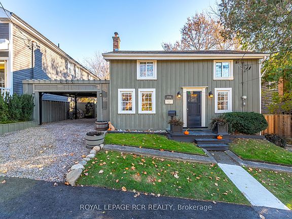 In the heart of Kettleby Village, this home is a prime example of the town's 19th century charm and small community character. Set on a mature, private lot backing onto a ravine and greenspace, the property features beautiful board-and-batten siding, a side courtyard, and an English-inspired garden oasis. Inside, the sun-filled kitchen boasts a cathedral ceiling, centre island, and walkout to a private covered deck-perfect for morning coffee. The living room showcases exposed beams, pine plank floors, and a brick fireplace, while the intimate dining room invites warm conversation. Upstairs, three bedrooms each feature custom built-in cabinetry and pine flooring. Additional highlights include a detached painting studio, single carport, new propane furnace (2024), and new hot water tank. A truly special home that captures the spirit and serenity of village living.