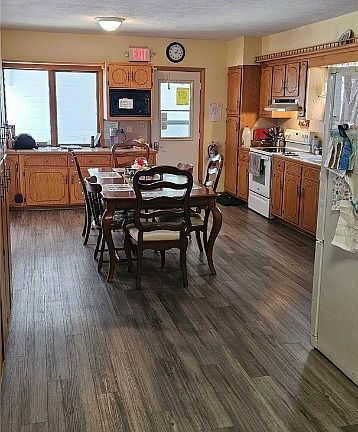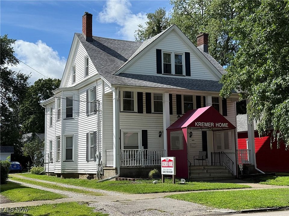 Welcome to this lovely 2 story colonial that boasts 7 large bedrooms and 3 bathrooms. It has that old time charm with a large living room and fireplace as well as a dining room and very large eat-in kitchen. There is a wall of cupboards in the kitchen to store a lot of kitchen gadgets and canned goods and is equipped with a large fridge, stove and dishwasher. There is a beautiful sunroom/sitting room with lots of windows. There are 2 furnaces as well as central air. There is laundry facility in the basement as well as a stackable washer/dryer in the upstairs bathroom. There is a full basement with an outside entrance door. There is a wheelchair ramp leading up to the rear door entrance into the house. Outside you will find a storage shed and a 3 car garage. This home is waiting for a large family or is in a great business location,