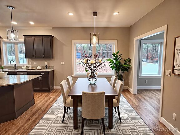 GORGEOUS RANCH home to be built - Still time to customize!! This Beautiful Ranch offers a 3 car garage with a hip roof, interior has an open concept living/kitchen/dining and 20 x 24 Family Room. Primary Suite with walk in closet and tiled shower bathroom. Big attached garage. Interior has walkup stairs above garage with finished bonus room or separate TV area and half bath. Room sizes are approx and will vary. This private setting is close to trails and will sit back off the street about 500-600 feet. Starting in February and its about 8 month build after foundation...still time to customize your dream home! See virtual showing of a the same home with different options. The bonus room will be much larger on this property then the tour.