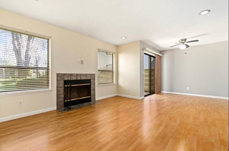 Single level 2 bedroom/2 bath 1034 +/- sq. ft in Mission Lakes complex. Equipped with a cozy fireplace, convenient indoor laundry hook-ups, and 2 parking spaces and 1 car garage. The kitchen and open living room connect to the patio. Enjoy the beautiful courtyard with surrounding mature trees. Updated tile in the entry way and master bathroom. Utilize the amenities such as the swimming pool, hot tub, and gym. Central to schools, shopping plazas, restaurants, hotels, trails, Spring Lake, Howarth Park and other local parks. Freshly painted, newer heater, laminate flooring in living room and dining area.