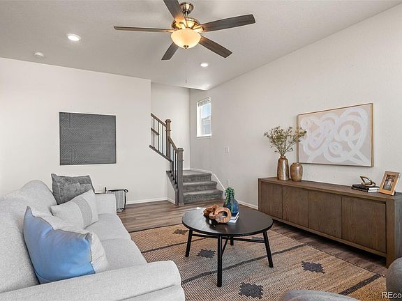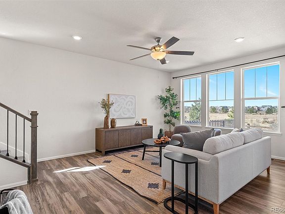 Welcome home to 455 Old Hammer Street! This bright, open-concept home offers a stunning chef’s kitchen with granite countertops, a large eat-in island, gas range, ample cabinet and counter space, and newer stainless steel appliances— absolutely perfect for entertaining! The living and dining areas feature beautiful LVP flooring throughout and overlook peaceful greenbelt and open space views. Just off the kitchen is an adorable office nook, ideal for working from home. Upstairs, the spacious primary suite includes a four-piece bath, large walk-in closet, and serene views of open space -- offering more privacy than ever. Two additional bedrooms and a versatile loft provide plenty of room for guests, kids, home office or a second living area. With the oversized two-car garage, you'll have plenty of space for all your Colorado gear and outdoor toys. Finally, imagine the possibilities with the framed, unfinished basement ready for your personal touches! This home is conveniently located near Buckley AFB, DIA, E-470, and Southlands Mall. Schedule your visit today-- showings will begin Thursday 4/17 @ 9am.