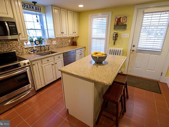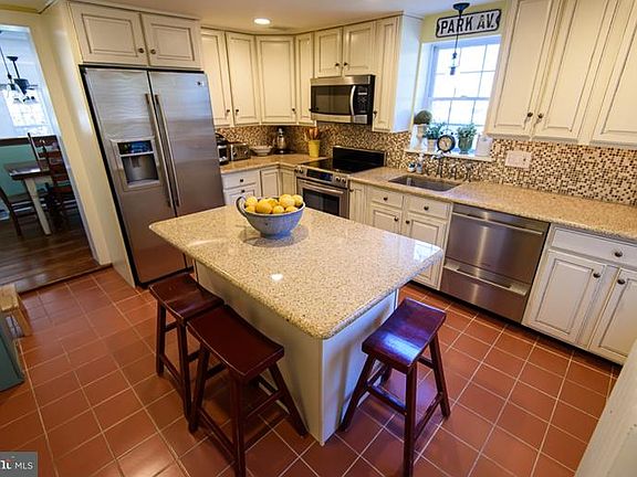 This beautiful unique, well maintained 3 bedroom, 2.5 bath two story borough home is ready for you to move right in. Upon arriving, you encounter the remodeled large country wrap around front porch with new decking, posts, and recessed lighting. Entering the kitchen you will find classic cabinetry, island, granite countertops, tile backsplash, recessed lighting, and tile floor. Just off the kitchen is the wonderful dining room with engineered hardwood flooring and a bay window. The dining room overlooks the sunken family room giving an open feel. The family room features high ceilings, plenty of natural light, two paddle fans, and a patio door leading to a stone patio and the fenced in rear yard. The first floor is complete with a laundry area, powder room, and a den with hardwood floors, exposed stone walls, and exposed beams. The lovely stairway to 2nd floor features oak stairs and exposed stone walls leading to a 2nd floor hallway with wood flooring. The master bedroom is very large and features lots of windows, a walk in closet and a master bath complete with jetted tub and separate stall shower. The 2nd floor is complete with two additional generously sized bedrooms and a hall bath. Other amenities include newer front doors, newer appliances, attic with extra blown in insulation, oil hot water baseboard heat with central air and tastefully done landscaping outside.