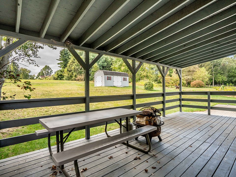 The perfect balance of comfort, charm, and thoughtful design describes this home to a T. Set on 1.4 beautifully manicured acres, the property greets you with an expansive newer driveway, elegant paver walls and walkway with granite steps, and lush, professionally landscaped grounds that create a warm welcome. The spacious covered deck is ideal for outdoor entertaining or quiet evenings at home, while the adjoining patio-already wired for a hot tub-offers a wonderful spot to relax and unwind. Inside, freshly painted rooms feel bright and inviting. The front-to-back living room features custom built-in bookshelves, a cozy wood-burning fireplace, and direct access to the deck, creating an easy flow for everyday living. The updated maple kitchen boasts modern appliances, generous storage, and a functional layout, while gleaming hardwood floors run throughout the main level. A convenient first-floor laundry room makes daily routines effortless. Upstairs, you'll find four comfortable bedrooms, including a spacious primary suite complete with its own private bathroom. The finished lower level provides a versatile space perfect for movie nights, gaming, or casual entertaining. Additional features include a rebuilt chimney and cap, updated electrical service, a dependable well system, a quality Klotter Farms shed, and more. Conveniently located just minutes from shopping, dining, parks, schools, gyms, golf courses, and healthcare, this home has exactly what you are looking for.