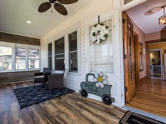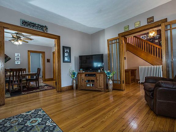 NICELY UPDATED home on a quiet street! Features 4 Bedrooms, 2 Bathrooms and a 2 car garage. Beautiful natural woodwork throughout the main floor including glass doors, custom mirror and bench in beautiful entryway and refinished hardwood floors. Nicely updated kitchen with newer oak cabinets and tile, all appliances stay, formal dining room, both bathrooms have custom tile showers, spacious bedrooms, large enclosed front porch with new flooring, lower level family room, lots of storage, newer roof, water heater, water softener, kitchen appliances, some newer windows and more! MUST SEE!!