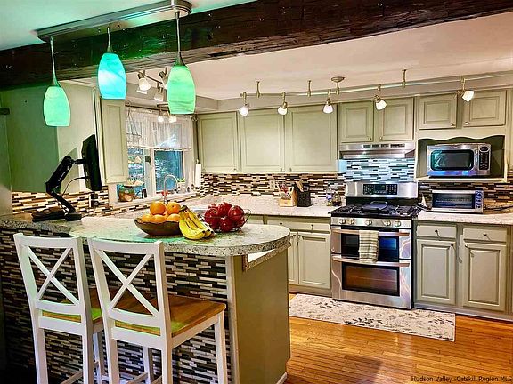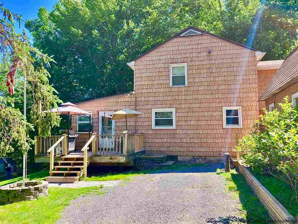 EVERYTHING YOU'RE LOOKING FOR ON ONE ACRE. This fantastic property in the town of Andes has plenty of privacy. It is walking distance to both Perch Lake and the Pepacton Reservoir, and a short drive to the towns of Margaretville and Andes, as well as ski areas and other local attractions. The home has been beautifully updated with WOOD FLOORS, AIR CONDITIONING, a cozy GAS FIREPLACE, DOUBLE SHOWERS AND VANITIES in the master bath, TANKLESS WATER HEATER, and much more. In addition to 3 bedrooms upstairs, the first floor has a GUEST SUITE complete with its own full bath and kitchenette. Also on the first floor is a large office space with a closet. In the backyard, you have your own POND, as well as a HOT TUB and a LARGE DECK. For the gardener, enjoy the RAISED VEGETABLE GARDENS and HEATED GREENHOUSE, both with water plumbed right to them. The garage has space for one car, as well as a separate studio area that is currently used as a home gym. Only 2.5 hours to GWB. Come and find your CATSKILL DREAM.