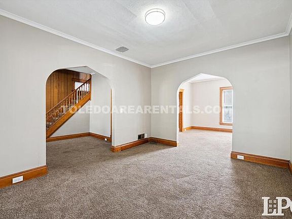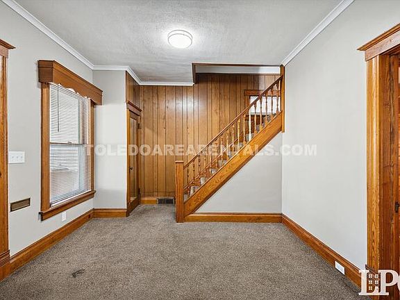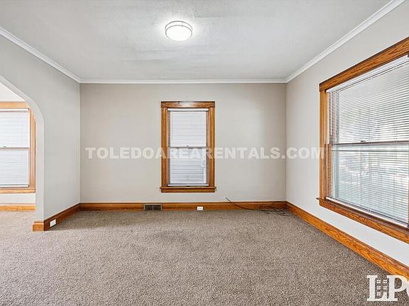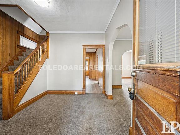 This charming 3-bedroom home in East Toledo features tons of original woodworking details throughout, adding character to the space. Fresh, neutral paint has been applied throughout the home, making it move-in ready for any style. The full basement offers washer and dryer hookups along with plenty of additional storage. Enjoy a fully fenced yard with a convenient storage shed and off-street parking, providing privacy and security. Don't miss out on this well-maintained property with plenty of classic charm!Residents are responsible for utilities, lawn care, and snow removal.