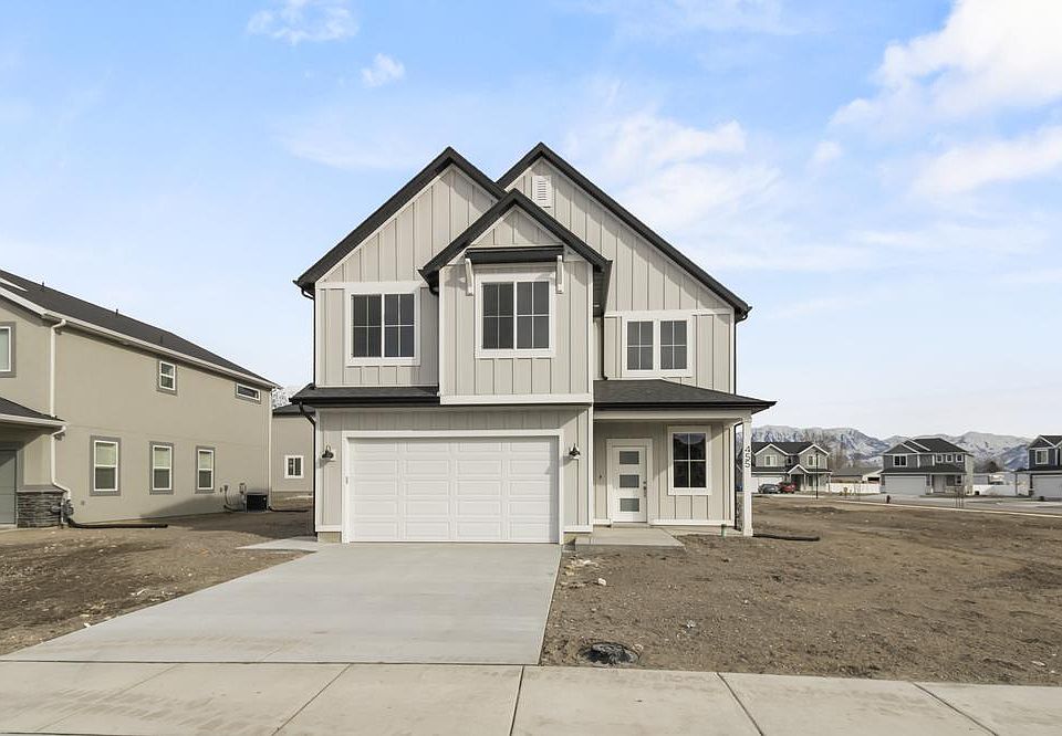 The simplicity of The Madison 2-story floor plan combine with a modern appeal for an overall stylish and functional design. This slab-on-grade home features 4 beds and 2.5 baths with an open-concept main living area. Featuring a large entrance welcomes you into the home. The flow from the family room into the kitchen and dining space make you feel right at home, with plenty of windows for natural light. A walk-in pantry in the kitchen provides lots of space for storing your kitchen essentials and food. Conveniently located off the garage is a mudroom and powder room. Step upstairs to discover a loft area near an open to below view of the front door, which creates an open and airy feel to the home you'll love. Feel ultimate relaxation when in your owner's suite with a walk-in closet and owner's bath. With two bedrooms, one with a walk-in closet, also upstairs. This home sits on a 0.14-acre lot. Located in Fenn Farms community, which is central to all the luxuries that Utah County has to offer. Conveniently set near Utah Lake as well as the base of Mount Timpanogos, Fenn Farms offers endless adventures for all residents. Exterior Features:Repose Gray SW7015 Stucco Base and Vertical Board N Batten Color Pure White SW7005 Stucco Trim ColorBlack Soffit and Fascia Interior Features:Shaker Paint Grade Gray Matters SW7066 Kitchen CabinetsQuartz Frost Kitchen Countertops Quartz Oceana Bath Vanity CountertopsStainless Steel Kitchen Appliances - Oven, Microwave, and DishwasherShaw Pa...
