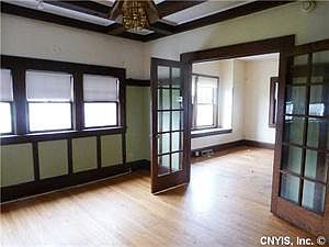 Charming three bedroom home. Craftsman style interior with original oak floors, beamed ceiling, architectural molding and large stone fireplace. Three spacious bedrooms, family room, formal dinning room and kitchen. Enclosed front porch lets you enjoy the sunlight. Great location in the village of North Syracuse. Walking distance to restaurants, retail stores, and on a bus route.