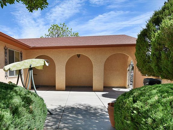 Your own oasis in Pueblo West! This wonderful 3 bedroom rancher sits on 2.65 acres with access to horse and hiking trails out back. Home sits back from the main road and has mature landscaping to provide plenty of privacy. Enter through a gate into a covered walkway with arches opening to the front courtyard and lovely stucco wall. Through the front door you'll find an open concept layout with large living, dining, kitchen, and additional breakfast nook. Kitchen has stainless appliances and corian counters upgraded just a few years ago. Master bedroom has french doors, huge walk-in closet, and adjoining bath with dual sinks and natural light. Large 2nd bedroom at other end of house has a full wall of closets and easy access to main full bath next door. The 3rd bedroom is close to master with wonderful natural light. Enter from garage into laundry room/mud room with large cabinet for additional storage and removable counter over utility sink. Dining nook has a convenient sliding glass door to back deck with gazebo frame ready for fabric cover for the summer. Deck faces west with beautiful morning shade and expansive mountain views, the ideal location to enjoy your morning coffee or grill in the evening. Mature landscaping throughout fenced portion of back yard, including two apple trees and full automatic sprinkling system. Beyond the fence is wide open land with a 22x30 detached garage, which has stucco to match the house and electricity for your workshop.