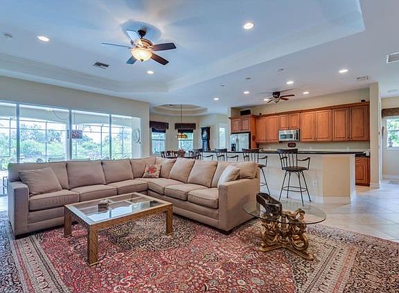 Stunning home from curb to creek! This luxurious home offers over 3400sf of living space with a Great Room & Split Bedroom design. Bells & whistles can be found in every room of the home, including Volume ceiling throughout, Tray ceiling in Great Room & Master Suite, Coffered ceiling in Den/Home Office, French door entry to home & Den/Home Office & Master Suite, large tile flooring set on diagonal in main living area, crown molding and decorative columns in Foyer, Master Bath & Pool Lanai. The Open Concept Kitchen features a long island w/ Breakfast Bar & Breakfast Nook, wood cabinets, stainless steel appliances, and granite countertops. Spacious Master Suite with walk-in closets, collapsing sliders to Pool Lanai and a gorgeous view of the creek & Preserve. The Master Bath has a unique glass enclosed tile shower that is semi-circle in design and a grand soaking tub. You will love to relax or entertain on the extended screened lanai that offers a pool & spa, pavers laid in a herringbone design and a serene creek & Preserve. Horse Creek Estates is a small non-gated, single family home community that is situated in the Palm River area of Naples.