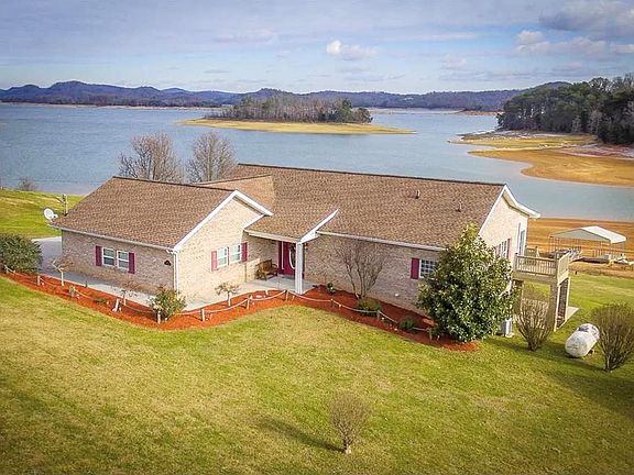 CHEROKEE LAKE FRONT HOME WITH 2,886 SQ FT OF LIVING SPACE! Dreaming of Lakefront living and walking out your back door and right down to the water and your own boat dock? This could be your dreams coming true. This home features your own private boat ramp and great dock for fun filled days on the lake. This home is completely steel frame construction so it is a very solid build. Brick and vinyl exterior for low maintenance. Wonderful lake and mountain views from every room on the main level. Relax on the covered porch that runs the length of the back of the home and looks right out at the water. A nice open deck of composite materials is great for catching some sun while watching to boats go by. Large open kitchen/living/dining areas on the main level make for easy entertaining. The owner's suite rounds out the main level also with great views and french doors to walk right out onto the covered deck to take in the water view. Downstairs offers a den, 2 more bedrooms, full bath and a great game room. There's plenty of room for parking and to store water toys on the lower exterior level and a covered patio.
