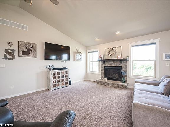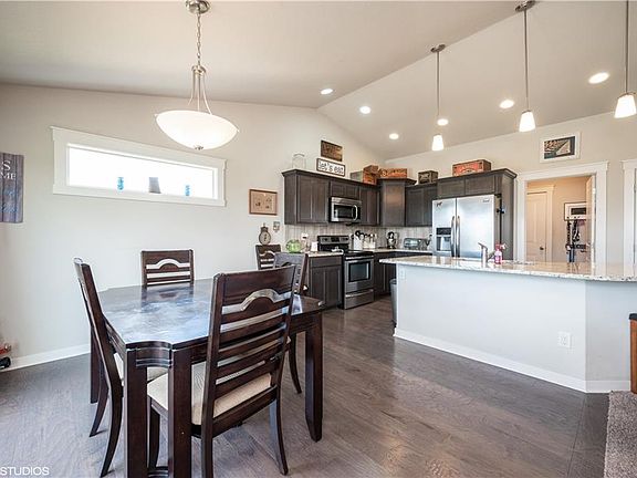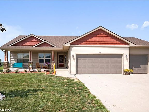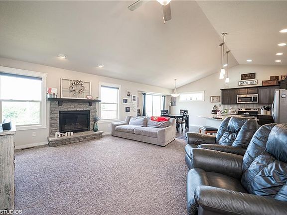 Ranch home situated on over an acre lot with gorgeous views of the countryside. Located on the edge of town, you will love this quiet cul-de-sac. With a front porch and mature landscaping, you'll definitely appreciate the curb appeal. As you walk in, you'll be greeted with an open concept living space with vaulted ceilings. The kitchen features a large center island for seating and views to your backyard. The main level features 3 bedrooms, 2 baths and a deck off the kitchen. The lower level features a large bedroom with a walkout with future finish for a family room and an additional bathroom. Do not miss out on this in-town acreage! All information obtained from Seller and public records.