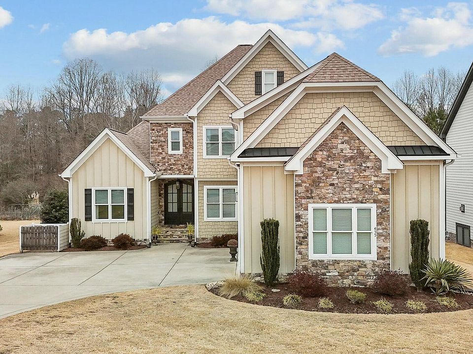 Welcome to this gorgeous 5-bedroom, 4.5-bath home in the sought-after Averette Ridge community! Designed for modern living, the open-concept layout is perfect for entertaining and everyday comfort. The kitchen is a showstopper, featuring a stunning copper farmhouse sink, a spacious island, stainless steel appliances, and a walk-in pantry. The primary bedroom offers a private retreat, complemented by three additional bedrooms and a third-floor bonus room that provides versatile space for entertaining or relaxing. You'll also find ample storage in the additional attic spaces on both the second and third floors. Relax outside to your screened-in back porch or gather around the patio fire pit for cozy evenings outdoors. The community also boasts a pool and access to a wonderful greenway, perfect for enjoying nature. This home is a must-see—schedule your showing today!