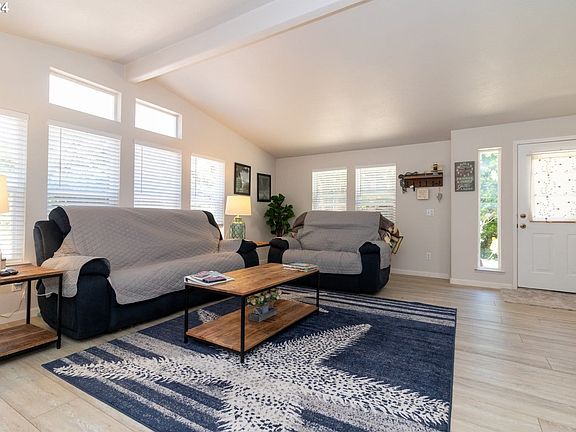 This Golden West stunning 3 bedroom/2Bath home boasts an extensive list of luxurious features, starting with the beautifully updated luxury vinyl planking throughout, except for the bedrooms. The kitchen is a show stopper, equipped with granite counters, smudge proof stainless steel appliances, a spacious 5'x6' center island, and a cozy breakfast nook. Enter through the double doors into the primary bedroom where your serene retreat awaits. Slider out to covered deck for fresh air. Master bath is a haven of luxury, featuring a soaking tub with granite surround, a walk in shower w/seat and a granite vanity area not to forget the large & spacious walk in closet with cubbies. Plumbing has all been replaced throughout. Outside the home boasts and a 24'x28' garage with a 12' & 8' automatic doors, perfect for storing vehicles, tools and more. The exterior is clad in durable fiber cement siding, and the fenced backyard provides a private oasis, complete with tie-downs in place. Roof approximately 11-12 years old. Dumpsite, 30 amp & water in place for RV's with a nice long driveway. Water heater replaced in 2018. 2024-10-24