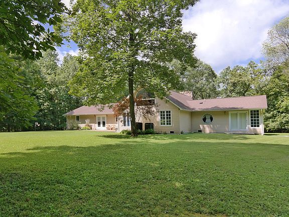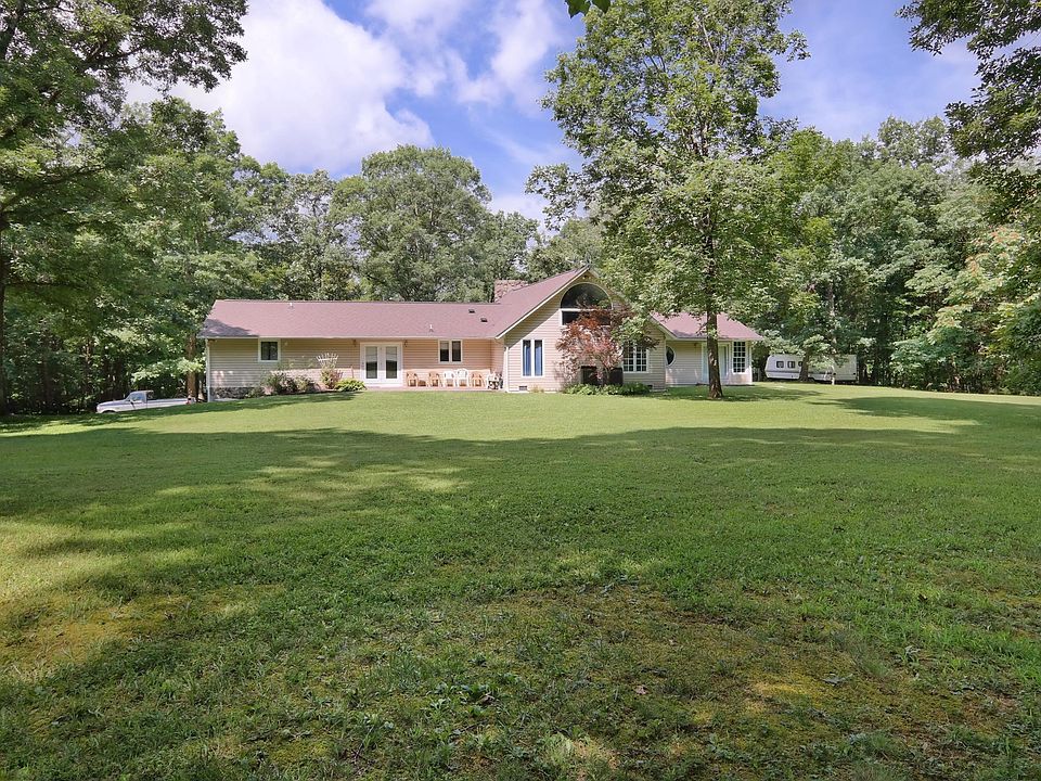 Great private location on wooded 11.6 acre tract. Spacious ranch with 3 bedrooms, 3 bathrooms, large kitchen, sunken living room with vaulted ceilings. 12 foot wide stone fireplace, loft room, flat backyard and long road frontage. Be sure and see the 3D virtual tour!