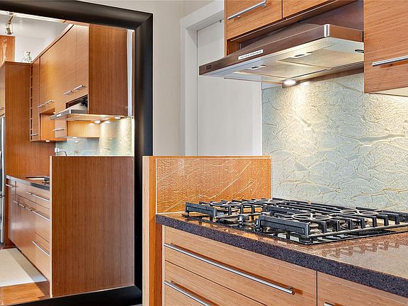 Open concept layoutsArchitectural characterExposed fir postsFull custom high-end renovationWood floorsBamboo cabinetryGas range