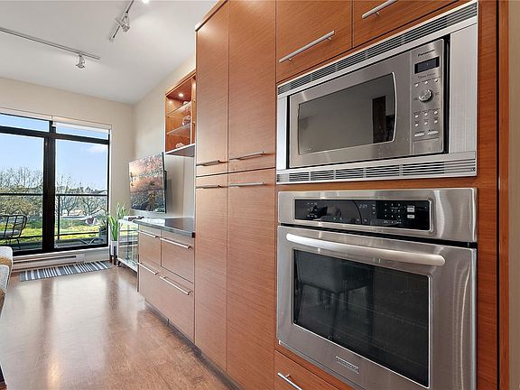 Welcome to "The Edge" in Vic West where city and nature intersect. This coveted steel & concrete building features just 48 urban loft-style residences, each offering open concept layouts, 10' ceilings & architectural character including exposed fir posts & expansive windows that fill the space w/ natural light. Unit 107 has undergone a full custom high-end renovation including wood floors, heated tile floors in bathroom plus bamboo cabinetry, gas range, sub-zero freezer & stainless appliances in the incredible oversized chef's kitchen. Both large bedrooms have custom closet systems. Plenty of extra storage in pantry area w/ in-suite laundry & on same-floor storage unit. Enjoy peaceful views of Saghalie Park from your 32' long patio, secure underground parking, bike storage, BBQs permitted & pets welcome (no size restrictions!). All this located in the heart of it all - just a 5 minute cycle or 20 minute walk to downtown Victoria & steps to the beautiful waterfront Songhees walkway.
