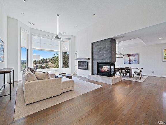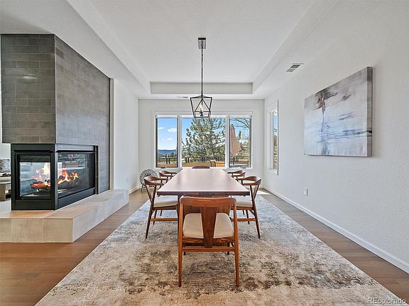 You'll love the location of this luxury Spring Ranch home nestled on a beautiful 5 acre meadow with fabulous views. In addition to having in-floor radiant heat throughout the house and air conditioning for warm summer months, the home has been meticulously updated with new paint, new flooring, a new boiler, an updated great room fireplace, new blinds, new sinks and counters in the kitchen and baths and more! Please see the Special Features supplement for a detailed list. A main level open floor plan with walls of windows, tall ceilings and views will provide easy living for you and a great space to entertain. You’ll notice an updated double-sided gas fireplace with custom contemporary finishes - designed to be enjoyed in the great room and the dining room. The kitchen features carbon stainless appliances, an island, a nook for casual dining and access to a deck appointed with a built in Dacor grill. Are you working from home? A main level office with custom built-ins and views will be an amazing spot to focus. The primary bedroom is located a few steps up from the main level and will provide you plenty of room to relax and lounge with a sitting area and a gas fireplace. The primary bath has 2 walk-in closets, a steam shower and a soaking tub. The lower level has 3 bedrooms, 2 baths and a huge family room which walks out to the lower-level patio with views of Spring Ranch meadow. Be sure to check out the Spring Ranch website: http://springranchpoa.org/. The neighborhood has a community pond and social activities (neighborhood picnics, holiday parties and neighborhood clean-up gatherings). The neighborhood is located on a beautiful elk migration path. Mountain Mutual Reservoir water certificate transfers with property. Xfinity high speed internet. Easy access to downtown Golden, Denver and the mountains.