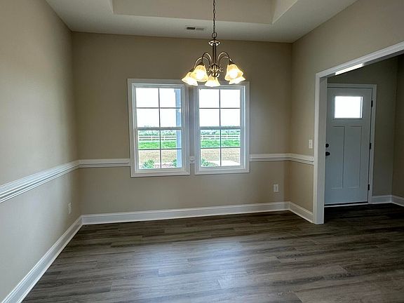 Welcome home to the Aspen where you will enjoy 1977 heated square feet of living space that sits on almost an acre of land! A split bedroom floorplan with three bedrooms and two full baths on the mail level plus a bonus and full bath upstairs! As you enter this gorgeous home from the covered front porch you will find a formal dining room, complete with trey ceiling and char rail. Through the foyer you'll be invited in by the warmth of the electric fireplace in the open living room and kitchen area. Off the living room is the entrance to the primary suite with full en-suite. The two remaining bedrooms and second full bath are just beyond the kitchen on the other side of the home. Across from the kitchen is the laundry room with access up to the bonus room as well as the third full bathroom.
