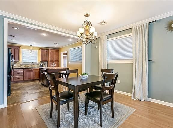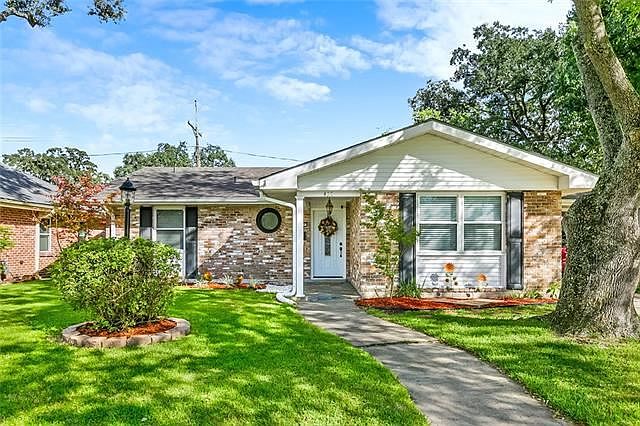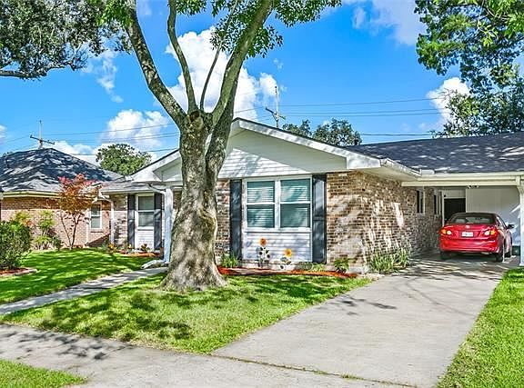 Lots of curb appeal with landscaping, a large shade tree, shutters, leaded-glass door, gutters, carport. Once inside you will notice the open floor-plan, spacious dining room/den combo off of a roomy kitchen with intricately laid tile floor and eat-at chopping-block island w/cabinetry below, fully framed windows, recessed lighting. Den has cathedral ceiling and atrium doors that open onto large concrete patio. X flood zone and new roof 9/2018, updated bathroom 2017, 8 new energy-efficient windows, must see.