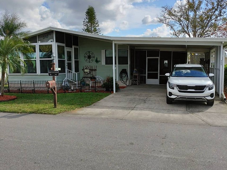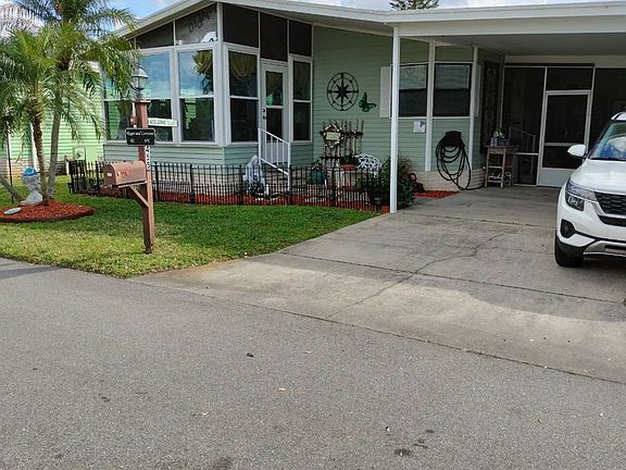 PRICE REDUCED! Don't miss this home in the highly sought-after Swiss Golf & Tennis a 55+ community. Whether you're looking for a permanent home or a seasonal get away, this beautiful home is for you. This 974 sq ft home was totally renovated from top to bottom in 2021. It has a beautifully appointed, open concept kitchen with stainless steel appliances including a wine cooler to keep your favorite beverages chilled. The 10 X 11 Florida room was upgraded in 2022 with new, double hung, low E glass windows, The Florida room has both A/C and heat providing an additional living/entertaining space. There is also a newly added 16 X 12 screen room offering another 192 sq ft of living/entertaining space for family and friends. The A/C was installed in 2021. The roof is about 6 years old. The washer/dryer are conveniently located behind bi-fold doors in the center of the home. The primary bedroom has a large closet and a full ensuite bathroom with a walk-in shower. The shed offers additional storage. The outside landscaping gives the home great curb appeal. There is literally nothing to do but enjoy yourself and your neighbors. Monthly lot rent is $584. Swiss Golf & Tennis is a premier 55+ community. It is located on Lake Henry. The amenities and activities include an 18-hole executive golf course, pool overlooking the lake, large clubhouse, tennis & pickleball courts, dog park, shuffleboard, bocce ball, church services, cards, bingo, corn hole, bowling leagues, golf leagues, dances, holiday parties, golf cart parades, etc. It is a friendly community where everyone looks out for each other. All residential prospects must be approved by the park including passing a background check. Although it is a 55+ park, people over 40 years old can apply for residency. Don't let this one get away. Call the listing agent today to schedule an onsite or virtual tour today!