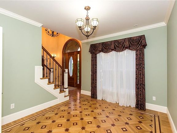 Exterior photos coming soon! Young contemporary colonial with 3 levels of LIVING AREA totaling over 5,000' sq ft in an EXTREMELY PRIVATE SETTING. Seller offering at a price your eyes will not believe. You deserve to come home and find comfort and high quality craftsmanship throughout paired with expertly designed and exquisite, custom work. Soak in the warmth of custom Inlay floors with imported hardwood from Russia and Europe, each piece skillfully cut and hand set in intricate patterns to amaze you. Many French doors and windows bring in abundant rays of natural lighting. Spacious eat-in gourmet kitchen and large living room with fireplace and coffered ceiling for your enjoyment. The first floor front sitting room and study (could be a waiting room and office) are located off the open two story foyer. Second floor has laundry area, 3 full baths, 4 bedrooms including a master SUITE over 600' sq ft which includes master bath complete with sauna, double sink, shower, jet tub, closets galore including his and her large walk-in closets, a dressing room and split level master bedroom. Enjoy the sound proof music room while the rest of the house does not. For your health and recreation workout in the gym room, or game area. Many storage options including large shelved storage room and separate utility room in the lower level near the gym. This home must be seen in person to feel and appreciate its loving, welcoming energy. Also High efficient Hydro-Air heating system.