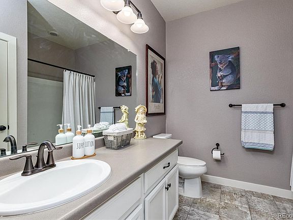 Location, location, location! This home is just a few minutes from Downtown Castle Rock in the desirable SIENA neighborhood. Enjoy shopping, dining and organized events that include: the Classic Rock Cruise-in Car Show, Farmer’s Market, Artfest, Starlighting, Oktoberfest, Douglas County Fair & Parade, Live Concerts at Festival Park and more. This meticulously maintained home is designed for the Colorado lifestyle you desire. The practical floorplan with 9 foot ceilings utilizes a great room concept for an open feel. Enjoy quality finishes that range from the newly installed luxury vinyl tile on the main level to the finished basement with additional bedroom and full bath. The eat-in kitchen features 42” Timberlake Tahoe cabinets with crown molding in Linen finish, stainless steel appliances, oversized island with eating space, designer pendant lighting, custom pantry door, stone wrapped island and Zodiaq quartz counters. The focal point of the living room is a modern design fireplace with arctic white natural stacked stone. The primary master suite features a custom barn door to the five piece bath with raised double vanity, quartz counters, soaking tub, spacious shower with seat and walk-in closet with built-ins. Open floor plans on the main and lower levels allow for flexibility in entertaining. Enjoy the cost savings of a tankless hot water heater and smart thermostat. The integration of outdoor living space from the interior is a natural transition for the multitude of sunny days we enjoy each year. The 21 x 10 foot stamped concrete patio with pergola includes shades, fire pit and chairs. Need extra space in the garage? Not a problem as this garage is 25 feet deep with a 12 foot ceiling and 8 foot garage door. Showings start on 4/1 at 9 a.m.