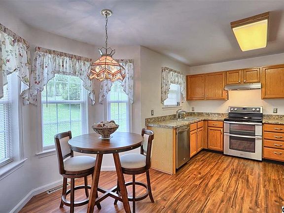 Well maintained ranch home situated on private 1+acre lot. Features 3 bedrooms, 2 full baths, oversized 2 car garage, vaulted ceiling in Living Rm, new SS appliances in kitchen, new double oven range, master w/ WIC, & Full Bath, wood laminate flrs throughout most of 1st floor, partial fenced yard, efficiant Trane heat pump, new roof, nice view of surroundings.