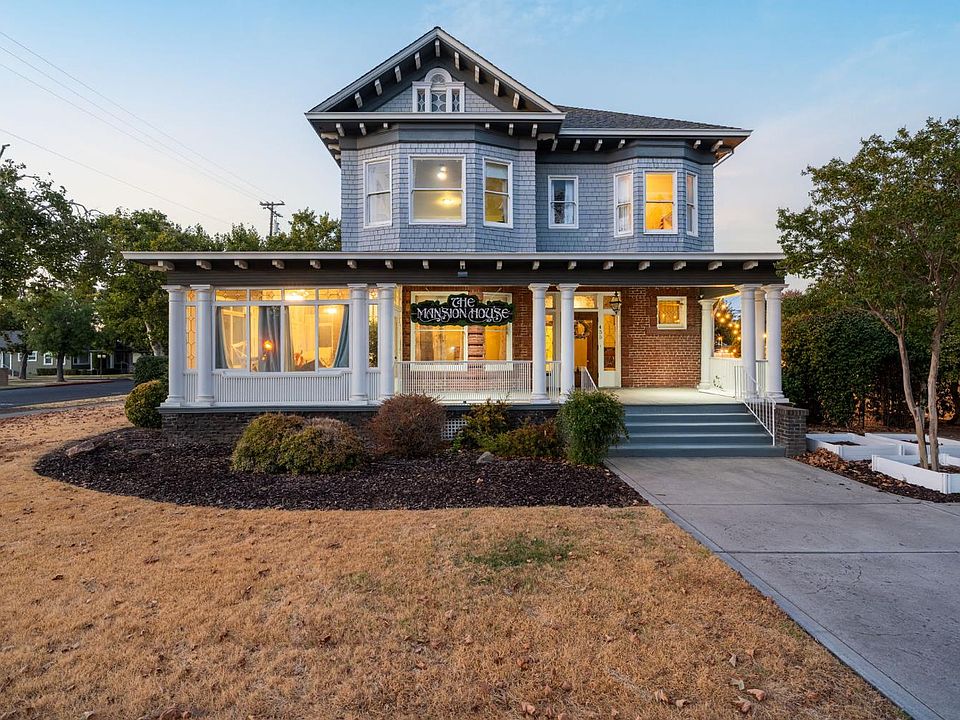 Discover The Mansion House, a meticulously restored 1906 Victorian landmark. An expansive 3,792 sqft of centercut wood on a brick foundation - unparalleled craftsmanship you won't find in today's builds.Zoned for both residential and commercial use, offering versatility and potential for a range of possibilities, whether for personal enjoyment or business ventures.Rich hardwood floors, crystal chandeliers, soaring 13 ft coffered ceilings, three original fireplaces, and leaded-glass windows preserve the beauty of the past. The grand mahogany staircase with included bar and piano make an unforgettable first impression.The chef's kitchen showcases exposed brick arches, premium commercial appliances and modern function. Upstairs, the primary suite features a fireplace, bay window, and private balcony, while a clawfoot tub adds vintage charm. Four oversized bedrooms plus flex room and office. Every detail exudes luxury and comfort.While the historic details shine, the home has been updated with new HVAC, plumbing, and electrical systems for reliability and peace of mind.Set on a large corner lot with 12 parking spaces in a private parking lot, a wide front porch, and a sunroom/veranda overlooking beautifully landscaped gardens. Fully enclosed private backyard with outdoor bar, fire pit, gazebo, large grassy areas, outdoor dining dressed with romantic fairy lights.The Mansion House is truly a one of a kind property that seamlessly blends historic grandeur with modern amenities. Don't miss your chance to own a piece of history, a rare gem in Merced's real estate market.