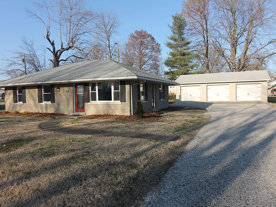 Open House 1/19!! Freshly remodeled 3 bedroom 1 bath Ranch home with detached 3 car garage in Elberfeld! Everything new and this home is located within walking distance from the Elementary School, park, and downtown! Open floorplan, stainless steel appliances, recessed lights, new white cabinets, under cabinet lighting, modern faucet with large sink and subway tile backsplash. The main living area of the home features laminate hardwood floors. Bedrooms complete with new carpet, fresh paint, and new ceiling fans. The bathroom features tile floors, mocha colored vanity, large mirror, and subway tile shower / tub. All new wiring throughout with new breaker panel. The large 3 car garage includes an additional half bath, pull down attic access, and a gas furnace (not tested). Additional improvements to the home include new drywall throughout, insulation in exterior walls and ceiling, supply plumbing, electric water heater, windows (2016), roof (2016). No showings until Open House on 1/19. Call 812-457-6931 for any questions.