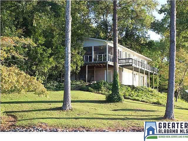 Panoramic View! Breathtaking!!! This cozy cabin-like home sits on 195 ft of main river channel water. The lot has one large dock and a small pier. Beautiful flowering plants landscape the yard which enables you to spend your time enjoying the lake and scenery instead of doing yard work. The house features an open floor plan. Den, Kitchen and Eating areas are all one large room with fantastic view of lake and awesome sunset views. 2 bedrooms and one bath as well as a 20 x 16 screened porch are included in the main level living area. The finished basement boast a den, master bedroom and bath, large laundry and a room that could be a forth bedroom, an office or exercise. The covered patio offers a beautiful view of the yard and lake. The property also features a one car garage and plenty of parking space. This home is move in ready and just waiting for you and your family to enjoy lake living.